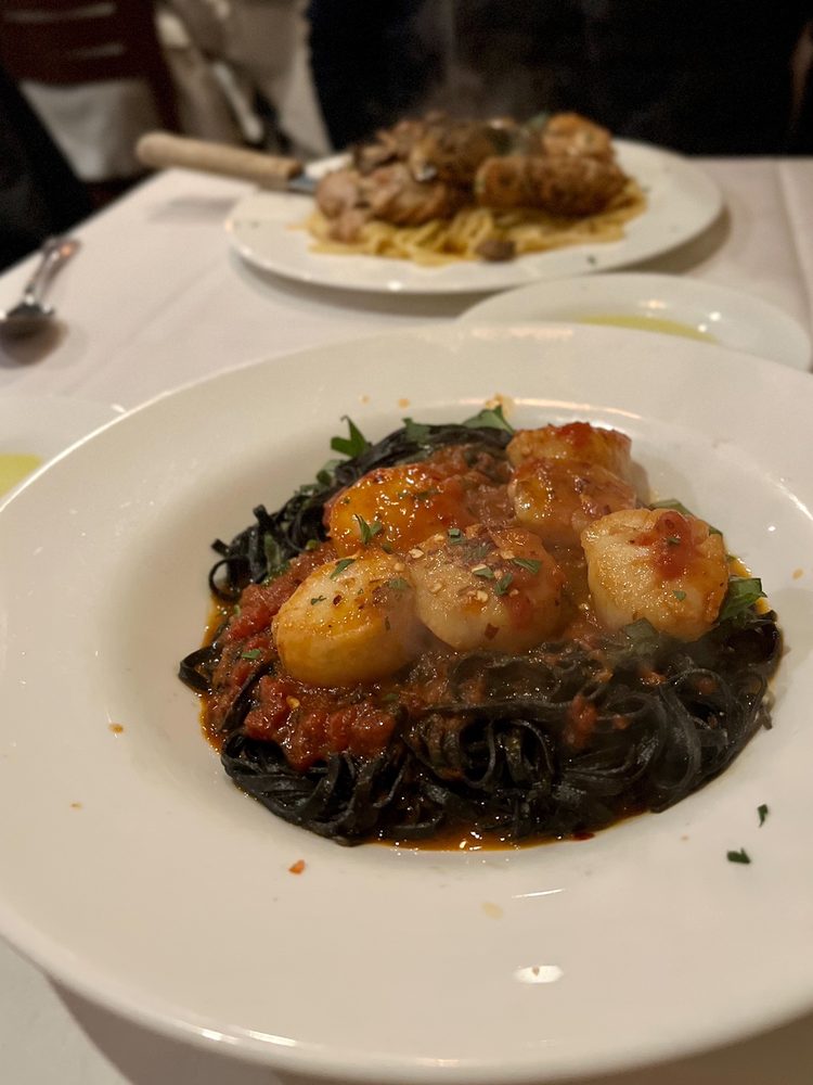 shrimps marinara or fra diavolo with mussels and clams over linguini